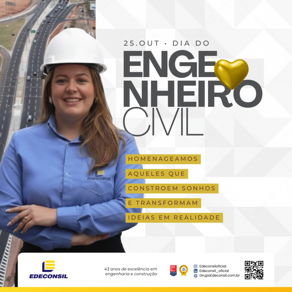 “Neste Dia do Engenheiro, a Edeconsil celebra todos aqueles que transformam desafios em soluções e projetos em realidade. Vocês, engenheiros, são a base da inovação, da segurança e do progresso que construímos juntos todos os dias. Nosso reconhecimento e gratidão a cada um que, com dedicação e talento, ergue sonhos e fortalece o futuro da nossa empresa e da sociedade. Parabéns pelo seu dia!”