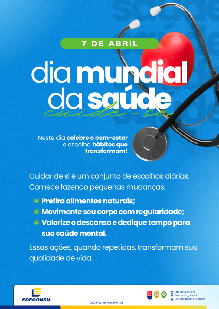 O Dia Mundial da Saúde é celebrado em 7 de abril, instituído pela Organização Mundial da Saúde (OMS) em 1948 para conscientizar sobre qualidade de vida e questões sanitárias globais. No Brasil, também comemora-se o Dia Nacional da Saúde em 5 de agosto, homenageando o sanitarista Oswaldo Cruz.
