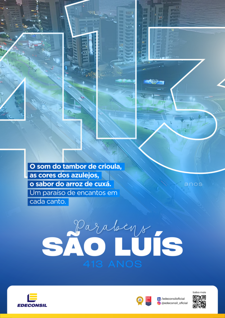 Parabéns, São Luís, pelos seus 413 anos. A EDECONSIL celebra você e se compromete a caminhar junto com a cidade rumo a um futuro ainda mais promissor.